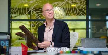 We spreken Wout Jan bij een van zijn bedrijven: MCart. Dit bedrijf is een “signmaker”, oftewel een bedrijf dat borden, bewegwijzering, reclame-uitingen en dergelijke maakt. Dat gaat veel verder dan simpele bordjes: met akoestisch vilt, ecologisch kurk en een hele batterij aan computergestuurde printers en plotters maakt het bedrijf hoogwaardige producten, van meterslange akoestische wanden met kleurrijke bedrukking tot displays.